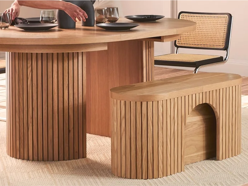 Elegantly designed, effortlessly extendable. Our most luxurious expandable dining sets seat up to 10 and feature built in storage compartments. Crisp, clean lines and refined wooden detailing will make this table the focal point of any room.