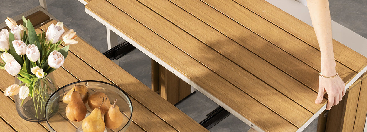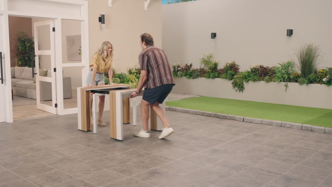 The world's only extendable patio table. A 6-in-1 outdoor dining set that expands to over 9' long. All-weather resistant and made for easy storage, outdoor living has never been easier.