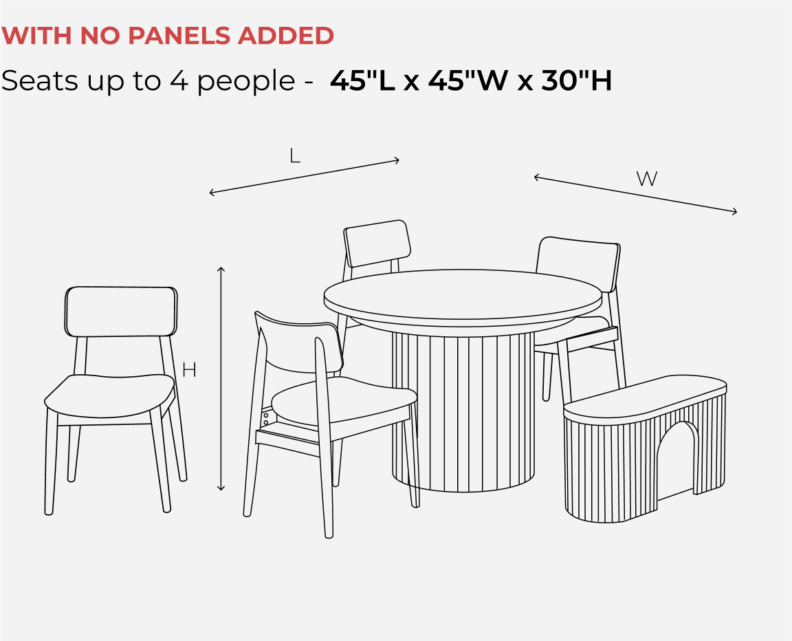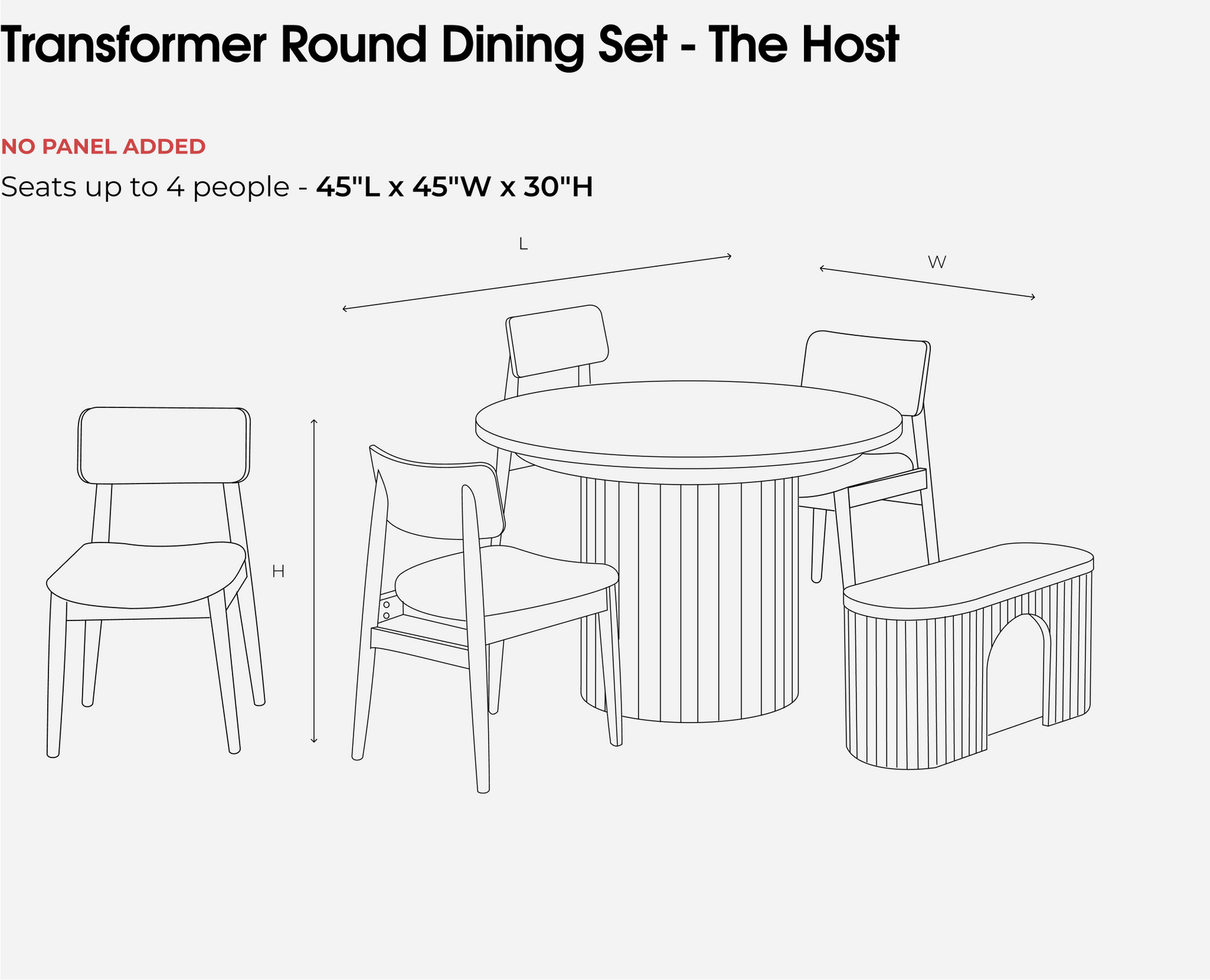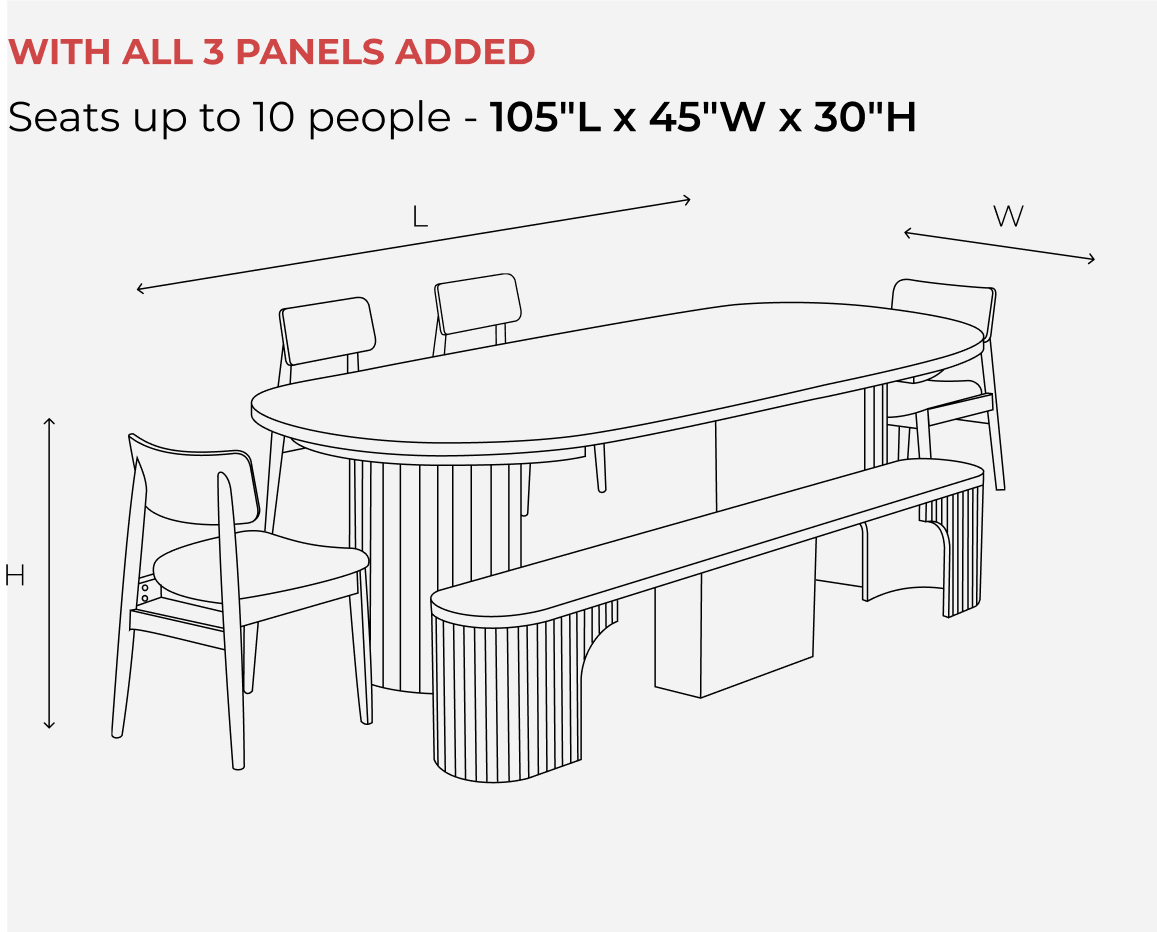 Easily transforms from a round to an oval table to seat between 4 and 10 people.